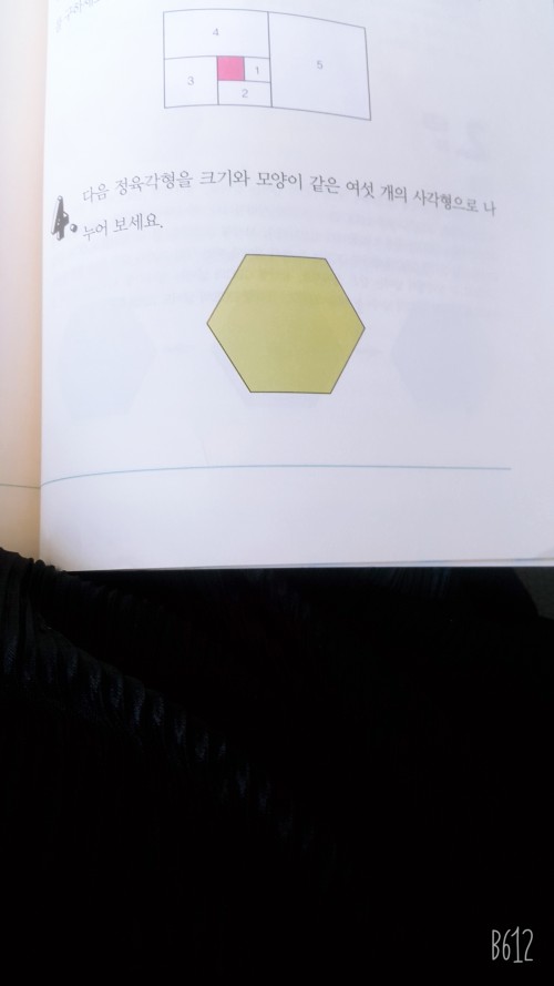 정육각형을 크기가 같은 6개의 사각형으로 나누어보기
