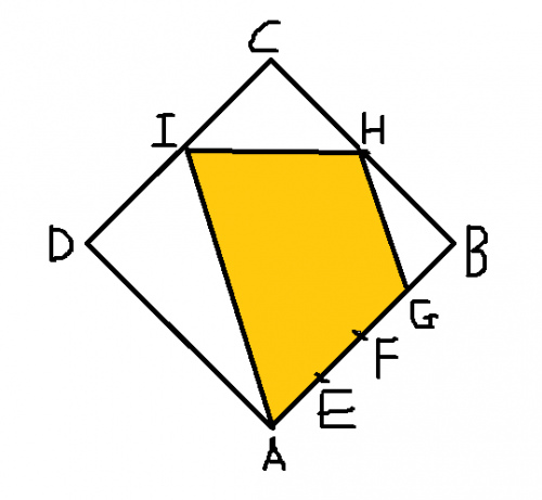 점 I,H는 각변의 중점일 때, 색칠한 부분의 넓이는?