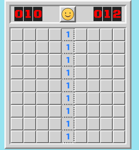 지뢰 찾기 초급 단계를 하는데 아래와 같이 나올 확률은?