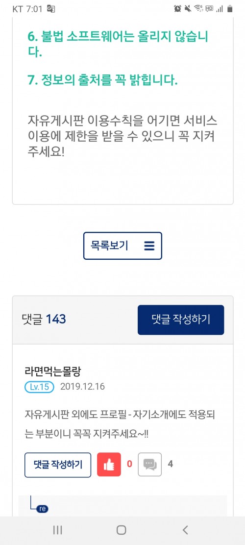 이라는 공지에 가면 댓글이 143개(지금까지만)