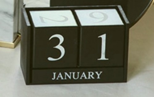 받침대 위에 두 정육면체로 날짜를 표시하는 달력입니다. 이 두 정육면체로 01부터 31까지를 표현할 수 있죠.