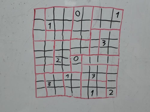 2. 방석의 크기는 작은 사각형 한개의 크기와 같고, 방석은 가로나 세로로 연속해서 두 개 이상을 놓을 수는 없다.