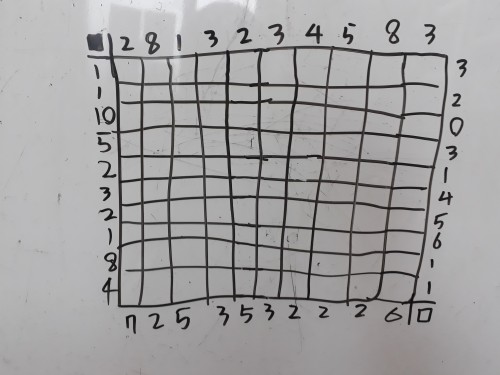 그리고 틀의 아랫쪽과 오른쪽의 숫자는 가장 길게 연속해서 하얗게 남기는 칸의 수이다.