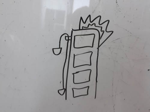 탈출할 수 있는 방법은 오직 화재 대피 장치 뿐이다.