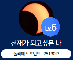 현재까지 나는 24문제를 풀었고, 기사를 1개 썼고(우수기사, 인기기사 아님), 출석을 6일 했을때,