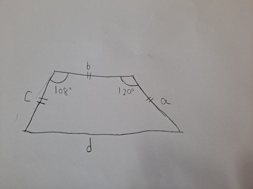 다음과 같은 사각형이 있을 때, 변 d의 길이를 계산하라.
