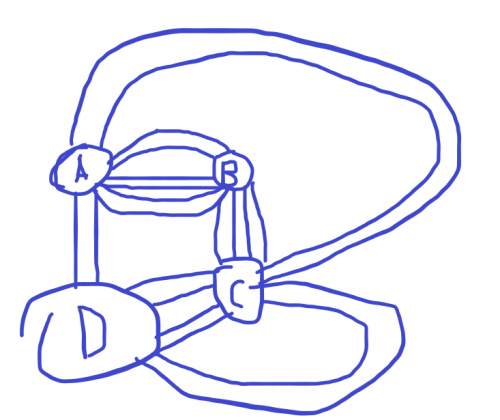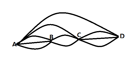 A에서 C까지 가는 길의 경우의수를 구하여라.