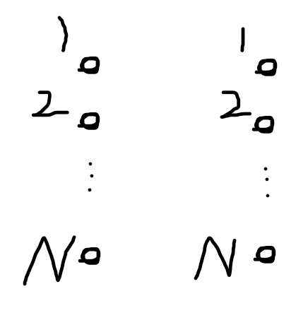 양쪽에 N개씩 점을 그립니다. 각각 위에서부터 1부터 N까지 수를 붙입니다.