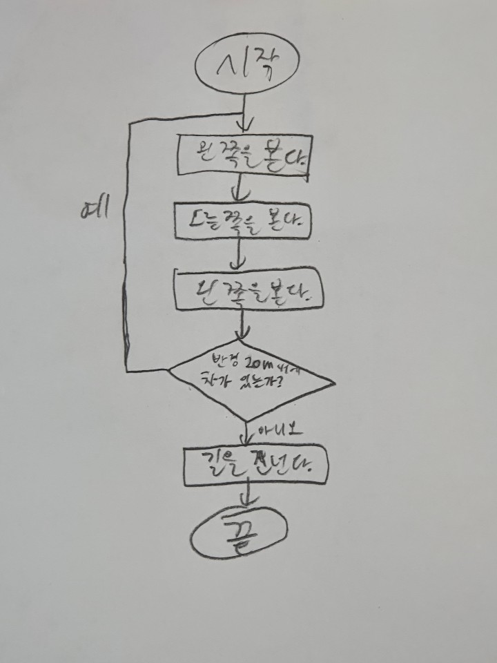 어느 연구소에서 로봇에게 길을 건너게 하는 다음 알고리즘을 입력했다.