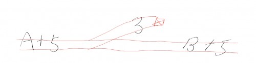 위 그림과 같이 앞에 있는 A열차와 뒤에 있는 B열차가 있다. (각각 기관차와 열차 5대 - 총 6대)