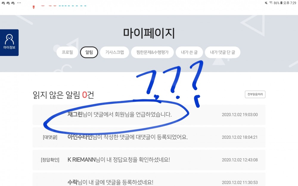 +시험삼에 이 글에 제가 저를 언급해봤는데, 그럼 알림이 안 오더라고요(심지어 '~님이 제 글에 댓글을 등록했습니다'도...)