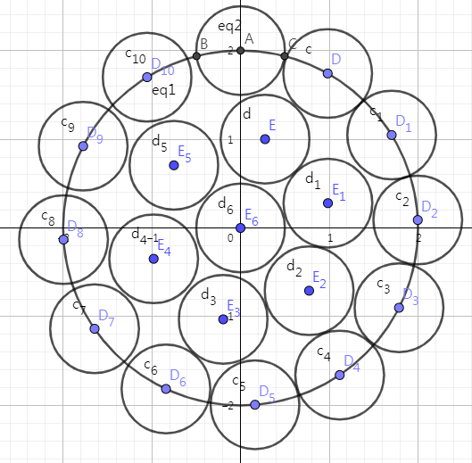 풀이를 읽어보니 1-1에서 사용한 방법으로 원의 가장자리에 점을 배치한 후 안에 다시 작은 원을 만들어 같은 방법으로 가장자리를 배치하는 과정을 반복한다는 내용인 것 같습니다.