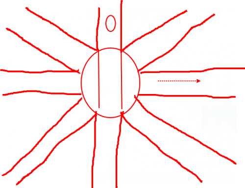 위 이미지의 위쪽 O표시에 5량짜리 기차가 있다.(기관차-객차-객차-객차-기관차)