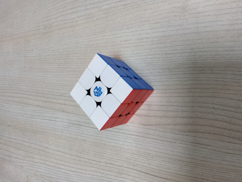 여기서 큐브를 몇 번 돌려 흰색 면 가운데 조각에 있는 그림만 180° 돌리게 할 수 있을까?