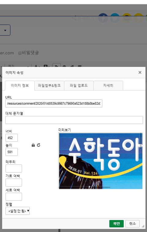 그럼 자동으로 이미지 정보로 옵니다. 대체 문자열 등등은 필수사항은 아니라서 귀찮으시면 생략하셔도 됩니다.