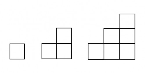 대표이미지는 한 변의 길이가 1인 정사각형으로 계단 모양의 도형을 만들어 나열한 것이다. 이 때, n번째 도형의 둘레와 넓이와 작은 정사각형의 개수를 각각 n을 이용한 식으로 나타내어라.