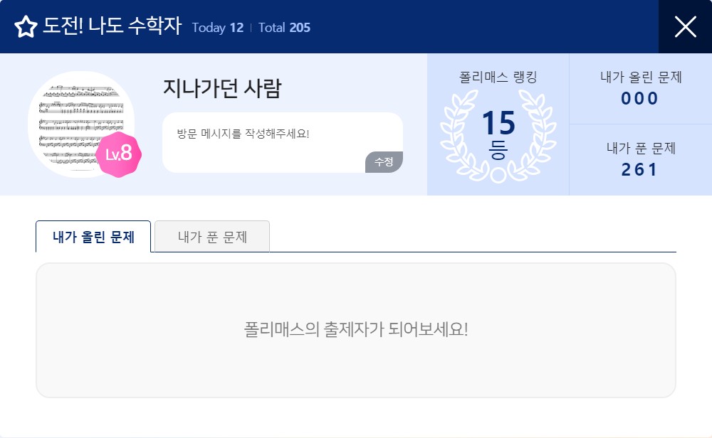 다른 회원분들이 제 '도전 나도 수학자'를 방문한 횟수입니다.