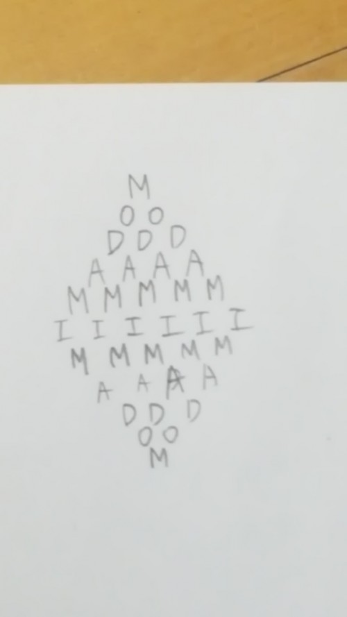 위 그림에서 'MODAM, I'M ADOM'을 만들려면 몇 가지 방법이 있을까? 중간에 되돌아가도 되며, 한 번 갔던 길을 또 갈 수도 있다. (굳이 맨 위에서 시작 안 해도 괜찮다.)